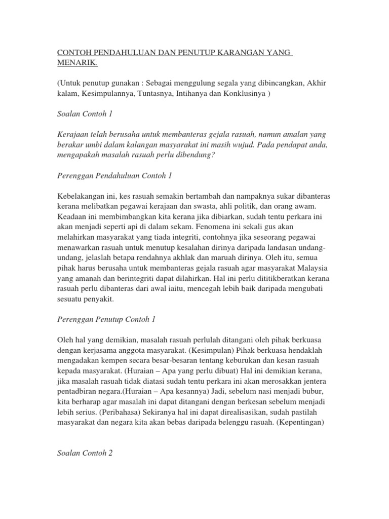 Contoh Pendahuluan Dan Penutup Karangan Yang Menarik Interaksi antara sistem keuangan negara dengan sistem politik bersifat. Karangan jenis ini mudah untuk dijawab tetapi calon mestilah. Contoh Pendahuluan Dan Penutup Karangan Yang Menarik Pdf - Tentera Bersekutu memasuki Jerman dari arah Barat dan Tentera Rusia serang Jerman di bahagian Timur.